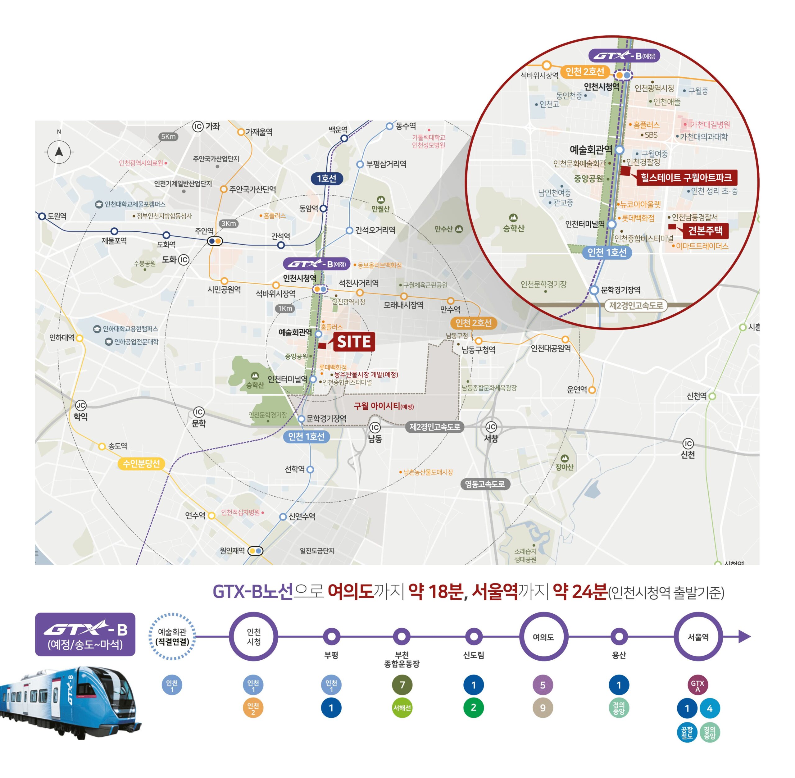 GTX-B(인천시청역/예정) 이용 시 여의도, 서울역 접근성 강화